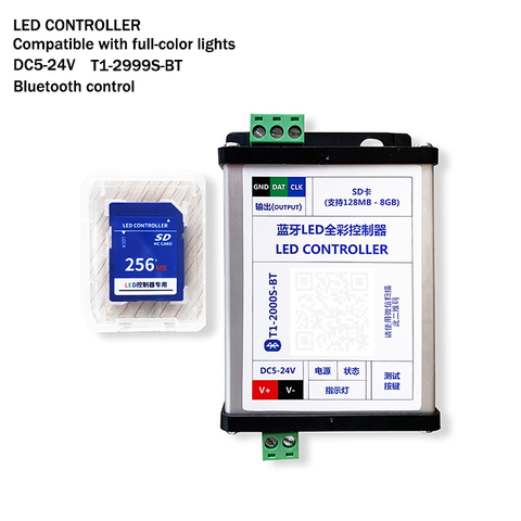Adresli programlama SPI T1-2000S-BT su geçirmez SD kart 5V/12V/24V LED tam renkli Controllerfor LED şeritler